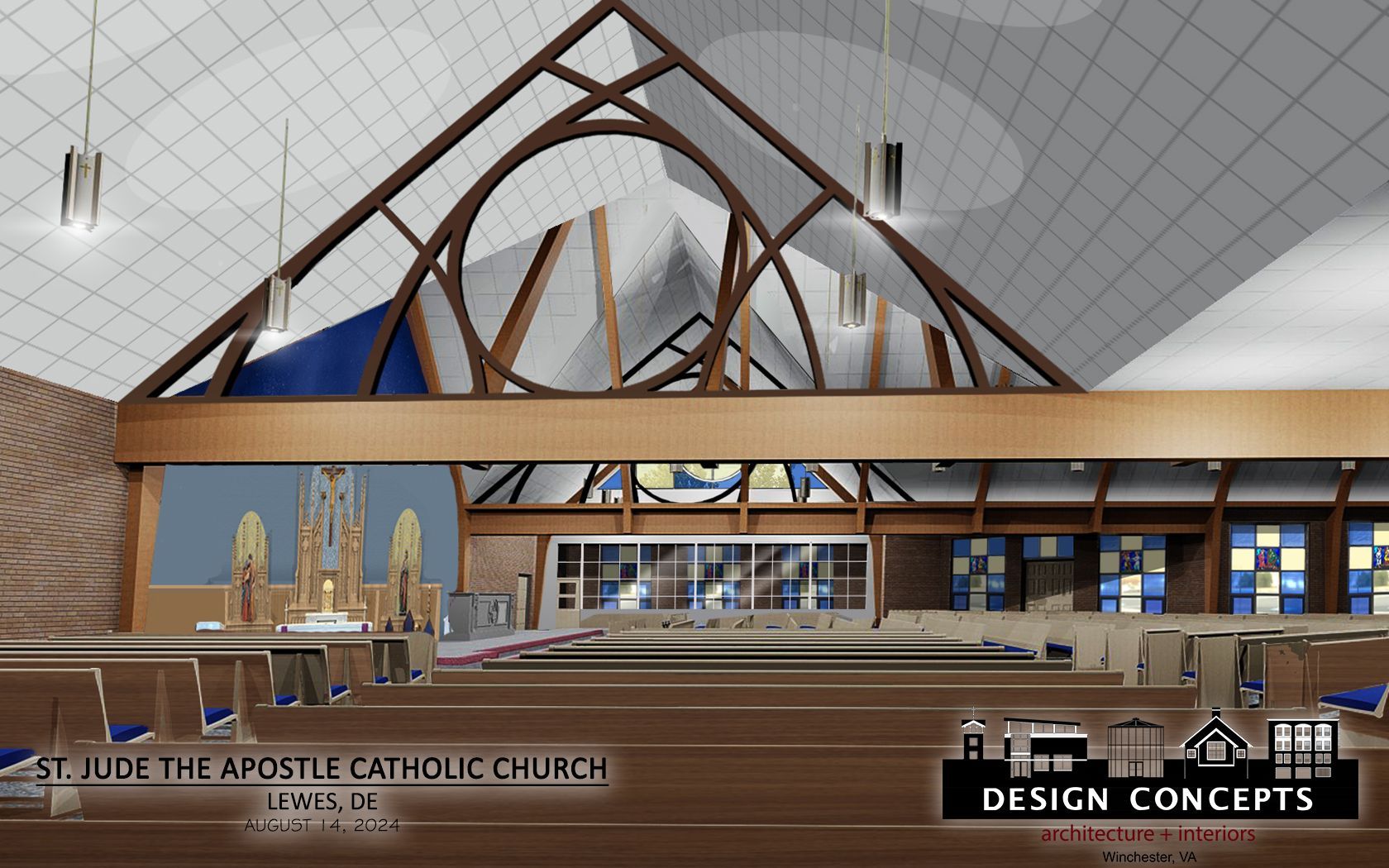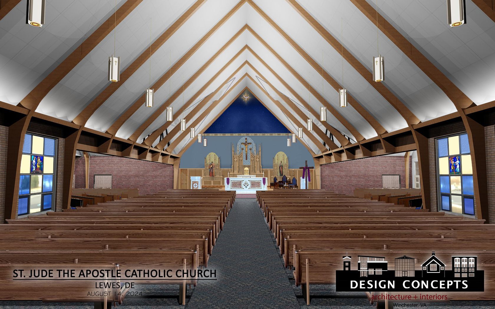 Also, you’ll find the Church Expansion Floor Plan as well as the design for the stained glass window of St. Jude the Apostle, which will replace the existing glass panes in the choir loft and which will be visible not only as we enter and exit the church but also as we and all visitors cross the bridge traveling south on Coastal Highway / Route 1. It will be a sign of warm welcome and, more importantly, of sharing the Good News of Jesus Christ as our parish patron St. Jude himself did on his apostolic mission.