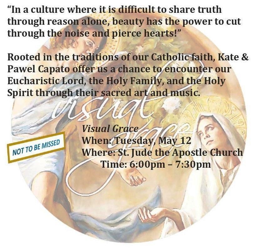 They will be presenting at St. Jude the Apostle Church, on Tuesday, May 12, from 6:00 – 7:30pm. Save the date and join us to listen and see these forms of art – a way the Lord shares His love with us through it.